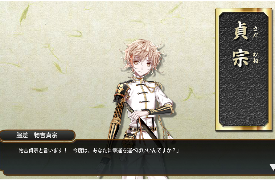 ずっと放置してた池田屋マップをようやくクリアして、ボスマス一発目で物吉くんを手に入れました!