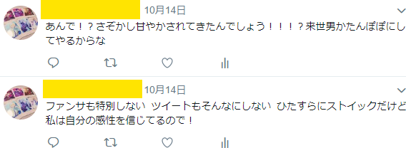 因みに↑は14日直後エゴサしてて「こんな人だとは思わなかった><こわいよぅ~~~><(※直訳)」ってのを見てキレた図。