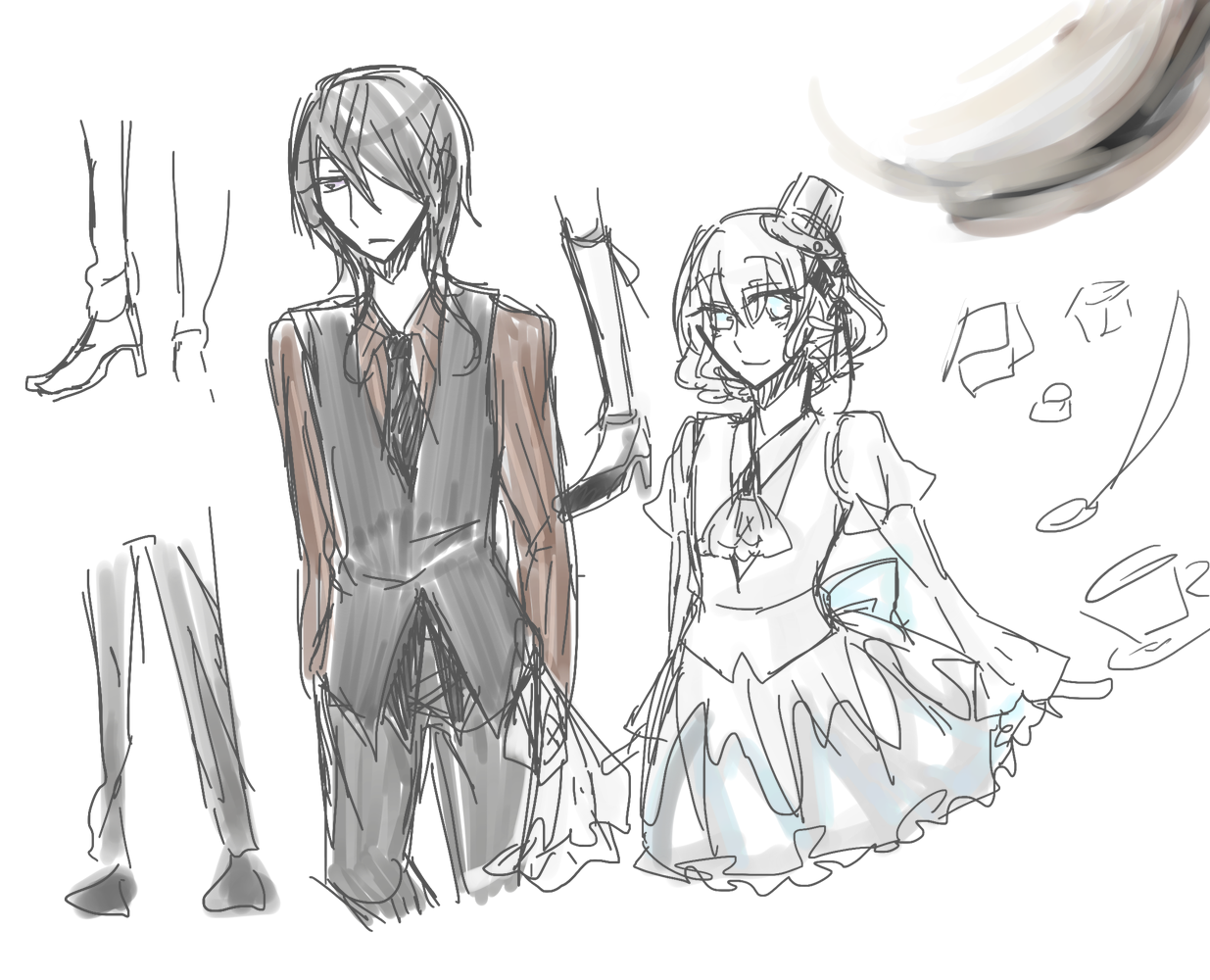 昔コーヒーとミルクを擬人化したものを再度描き直し。